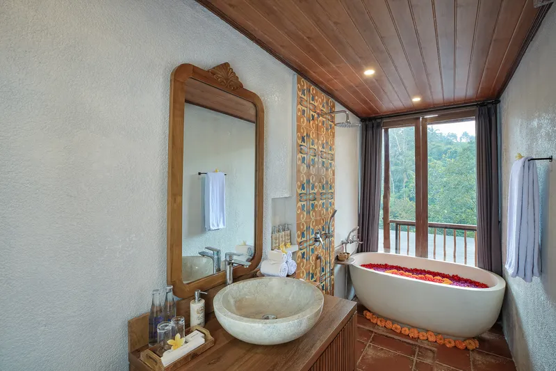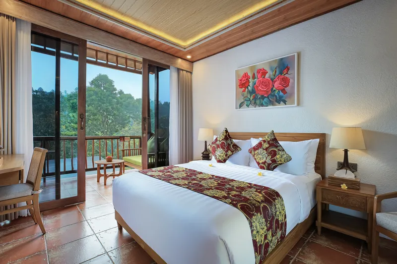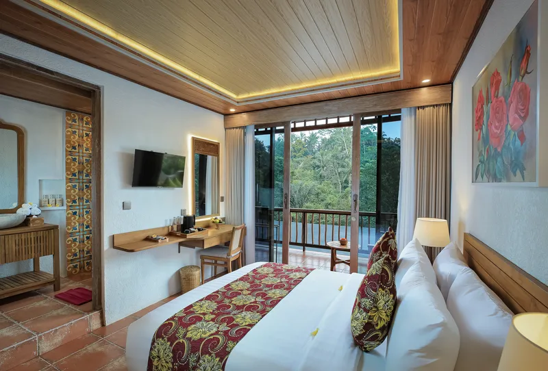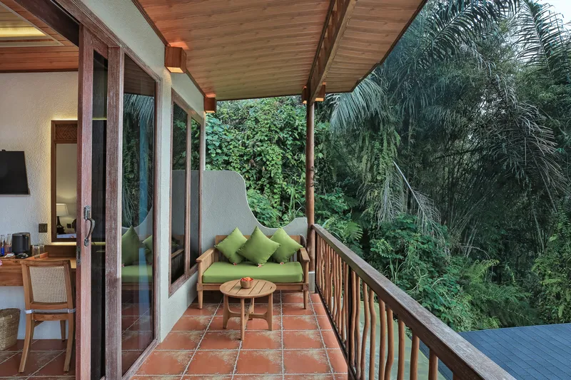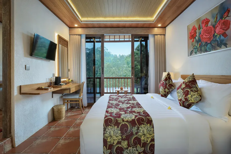 Experience a tranquility stay in our Deluxe Room with Pool View, where sweeping vistas of the jungle valley meet the calming shimmer of the pool below. Thoughtfully designed to blend modern comfort with natural elegance, this room offers a serene space to rest, reflect, and reconnect. Unwind on your private balcony or terrace as you take in panoramic views of lush greenery and distant hills, or enjoy access to the public swimming pool just steps away.